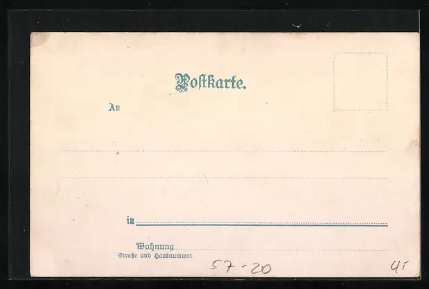 Personenbezogene Daten auf der Rückseite der Karte wurden durch blauen Textmarker unkenntlich gemacht. Die blauen Stellen sind auf die Vorderseite durchgeweicht und wirken sich negativ auf das Postkartenfoto aus
