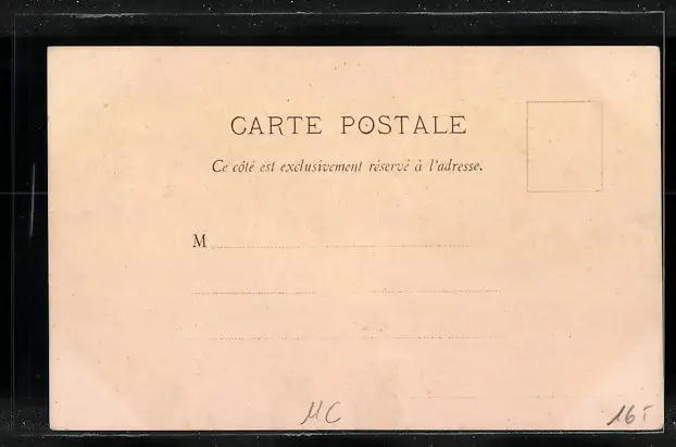 Personenbezogene Daten auf der Rückseite der Karte wurden durch blauen Textmarker unkenntlich gemacht. Die blauen Stellen sind auf die Vorderseite durchgeweicht und wirken sich negativ auf das Postkartenfoto aus