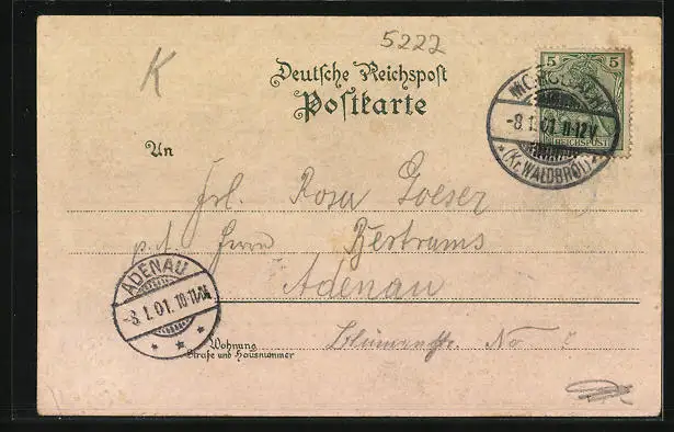 gelaufen 1901, Bugspur unten rechts mit Eckknick, guter Zustand