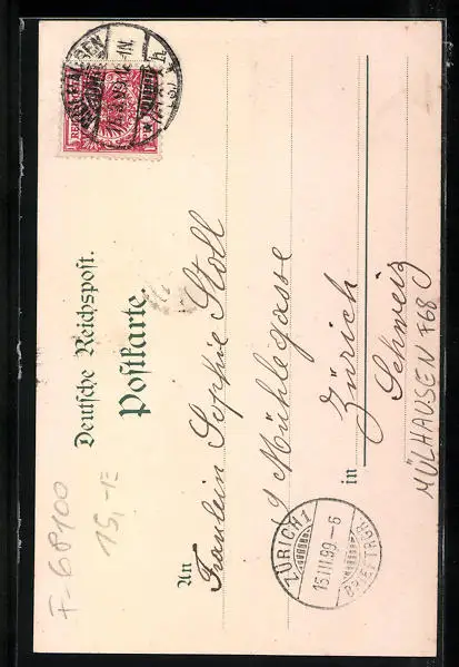 gelaufen 1899, Eckknick oben li., guter Zustand