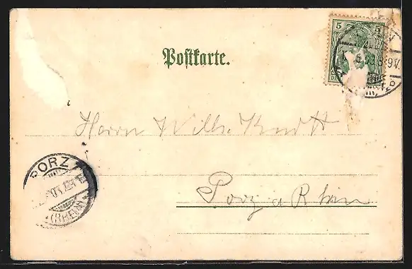 gelaufen 1903, Briefmarke entfernt, rückseitig Oberflächenschaden, guter Zustand