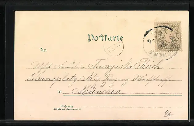 Personenbezogene Daten auf der Rückseite der Karte wurden durch blauen Textmarker unkenntlich gemacht. Die blauen Stellen sind auf die Vorderseite durchgeweicht und wirken sich negativ auf das Postkartenfoto aus