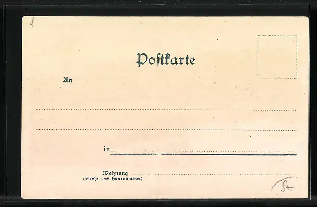 Personenbezogene Daten auf der Rückseite der Karte wurden durch blauen Textmarker unkenntlich gemacht. Die blauen Stellen sind auf die Vorderseite durchgeweicht und wirken sich negativ auf das Postkartenfoto aus