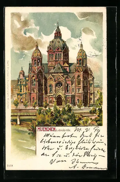 Lithographie München, Darstellung der Lukaskirche