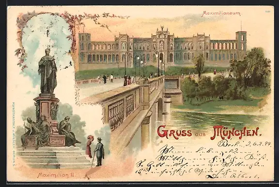 Lithographie München, Denkmal Maximilian II. und Maximilianeum