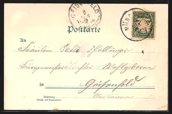 gelaufen 1897, Eckknick li. unten, guter Zustand