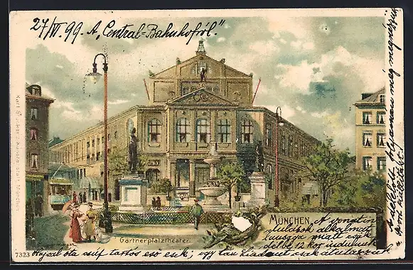 Lithographie München, Gärtnerplatztheater, Strassenbahn