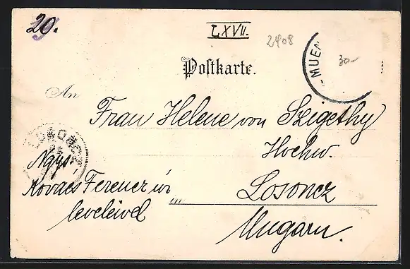 gelaufen 1899, Briefmarke entfernt, rückseitig Oberflächenschaden, Eckknicke unten, Abriebspur re. unten, guter Zustand
