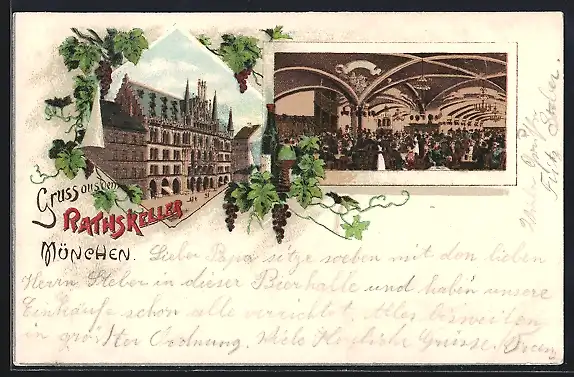 Lithographie München, Gasthaus Rathskeller, Innenansicht