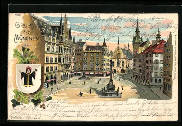 Lithographie München, Marienplatz, Wappen