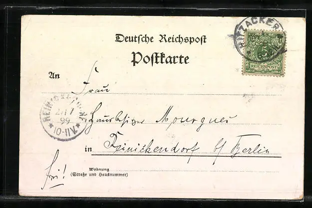 gelaufen 1899, Eckknicke li. unten und re. oben, guter Zustand