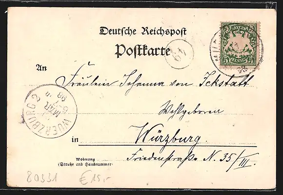 gelaufen 1898, Eckknick oben li., guter Zustand