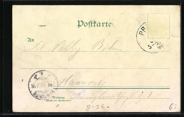 gelaufen 1899, Briefmarke entfernt, guter Zustand