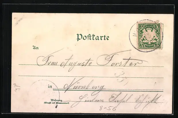 Personenbezogene Daten auf der Rückseite der Karte wurden durch blauen Textmarker unkenntlich gemacht. Die blauen Stellen sind auf die Vorderseite durchgeweicht und wirken sich negativ auf das Postkartenfoto aus
