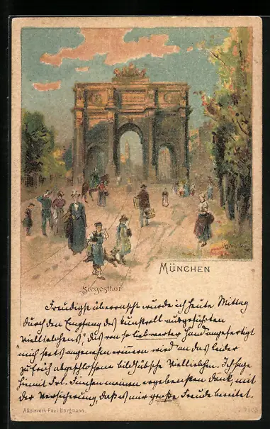 Lithographie München, Passanten am Siegestor