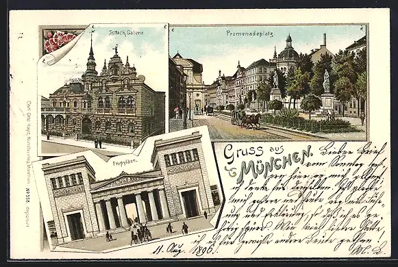 Lithographie München, Propyläen, Schack-Gallerie und Promenadeplatz