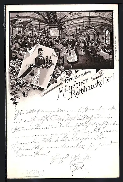 Lithographie München, Rathauskeller, Innenansicht
