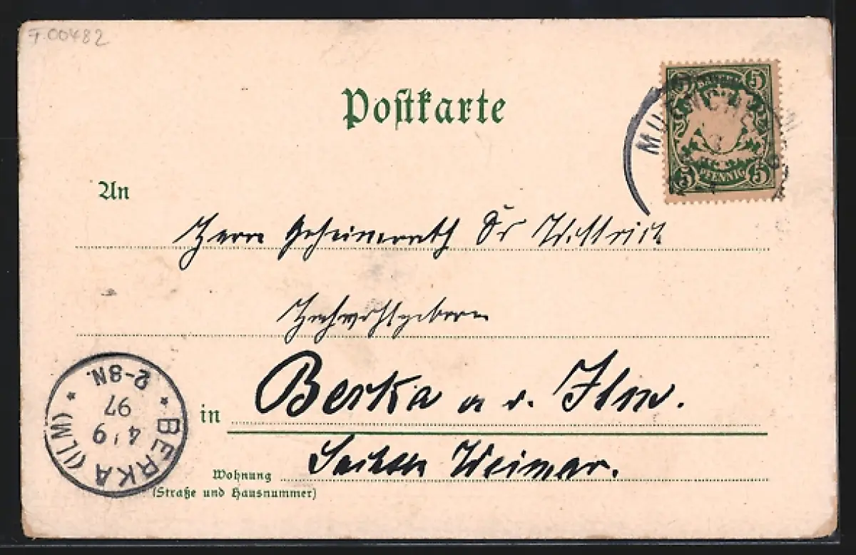 gelaufen 1897, Ecken bestoßen, Stempelspur, guter Zustand