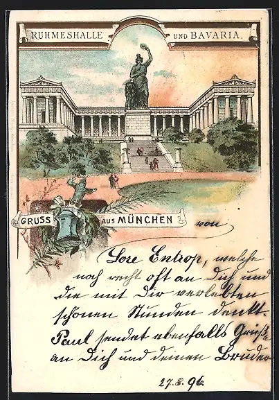 Lithographie München, Ruhmeshalle und Bavaria
