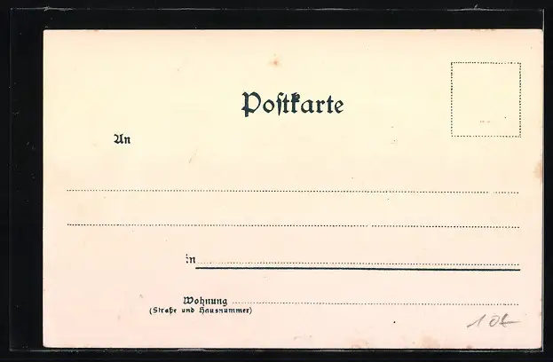Personenbezogene Daten auf der Rückseite der Karte wurden durch blauen Textmarker unkenntlich gemacht. Die blauen Stellen sind auf die Vorderseite durchgeweicht und wirken sich negativ auf das Postkartenfoto aus