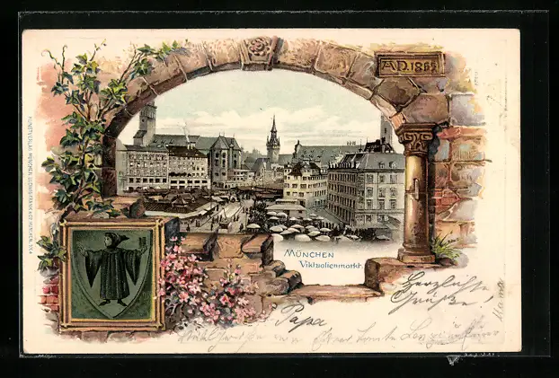 Lithographie München, Viktualienmarkt, Münchner Kindl