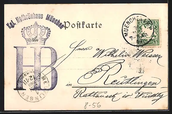 Lithographie Münchner Hofbräuhaus mit Münchner Kindl und Wappen