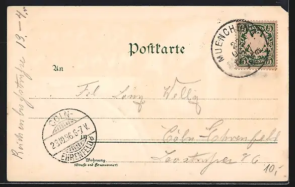 gelaufen 1896, Eckknick re. unten, guter Zustand