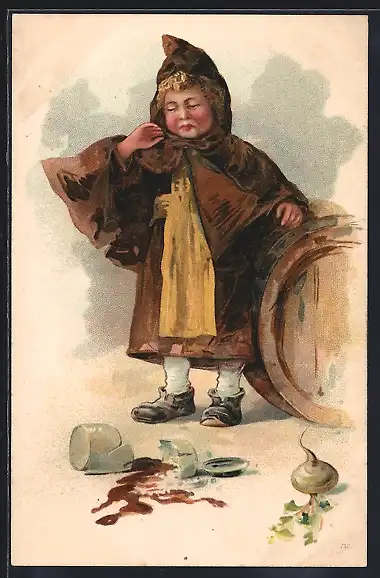 Lithographie Münchner Kindl trauert um einen zerbrochenen Bierkrug