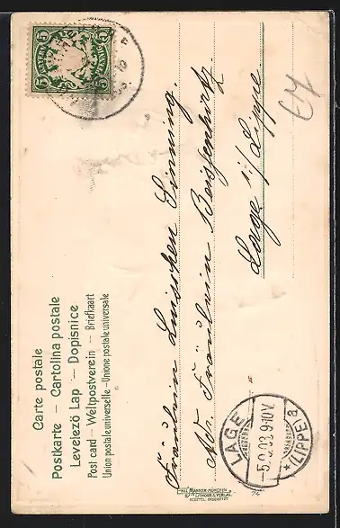 gelaufen 1903, Bugspur horiz. oben re., Eckknick unten re., guter Zustand