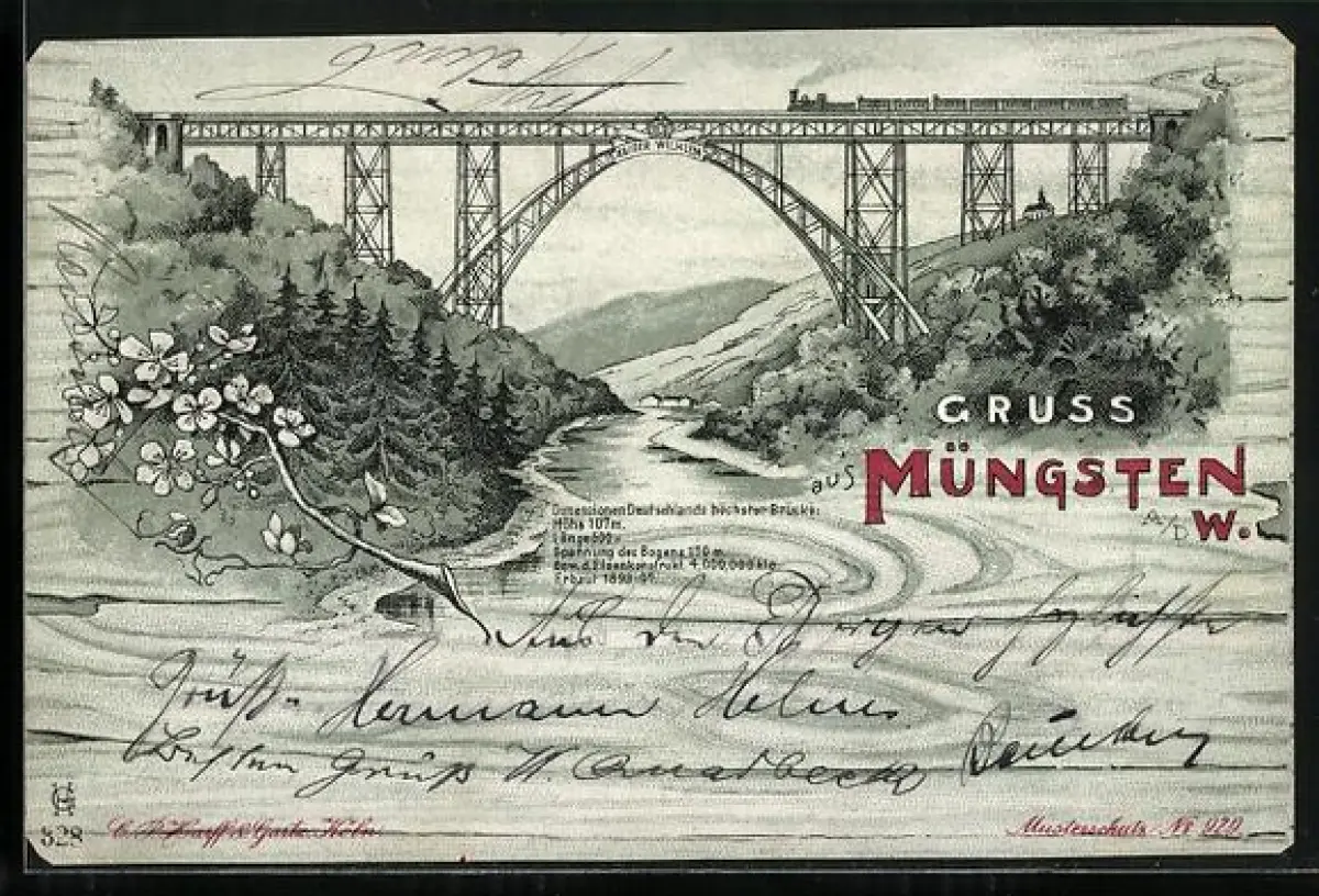Lithographie Müngsten, Kaiser Wilhelm Brücke