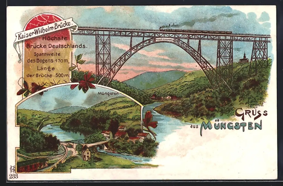 Lithographie Müngsten, Kaiser-Wilhelm-Brücke