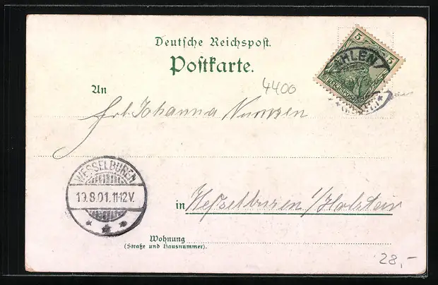 gelaufen 1901, Eckknick re. unten, guter Zustand