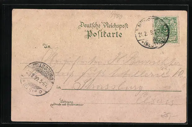 gelaufen 1899, Eckknicke oben, guter Zustand