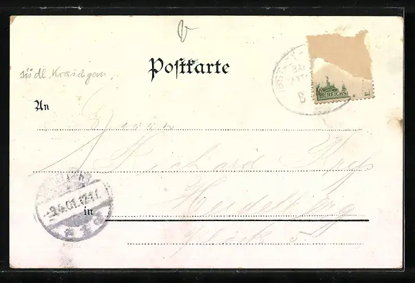 gelaufen 1901, Briefmarke entfernt, rückseitig Oberflächenschaden, guter Zustand