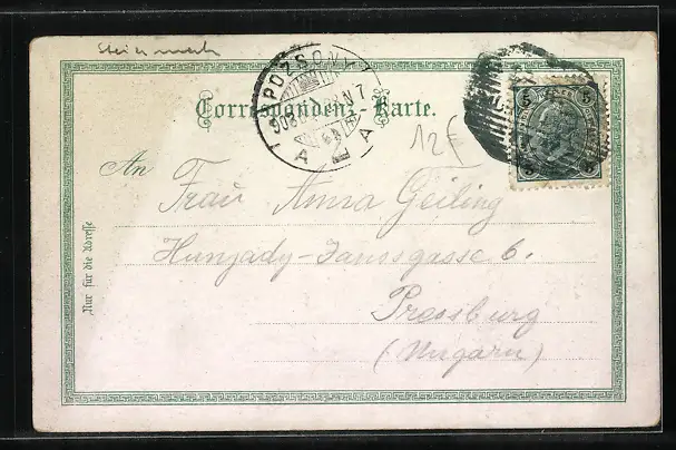 Personenbezogene Daten auf der Rückseite der Karte wurden durch blauen Textmarker unkenntlich gemacht. Die blauen Stellen sind auf die Vorderseite durchgeweicht und wirken sich negativ auf das Postkartenfoto aus