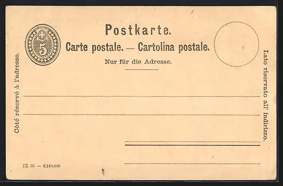Personenbezogene Daten auf der Rückseite der Karte wurden durch blauen Textmarker unkenntlich gemacht. Die blauen Stellen sind auf die Vorderseite durchgeweicht und wirken sich negativ auf das Postkartenfoto aus