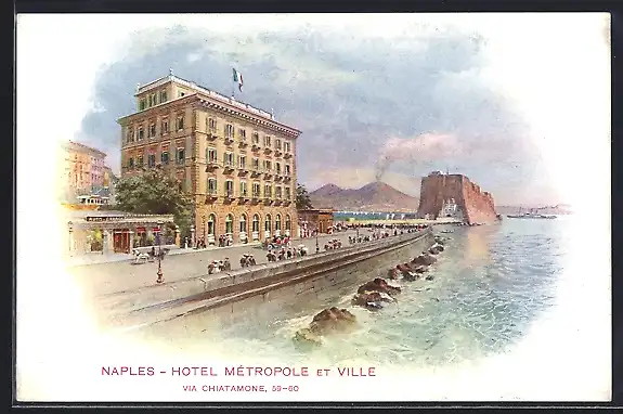 Lithographie Naples, Hotel Metropole et Ville