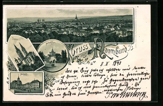 Lithographie Naumburg a. S., Marktplatz, Marienthor, Dom, Panorama