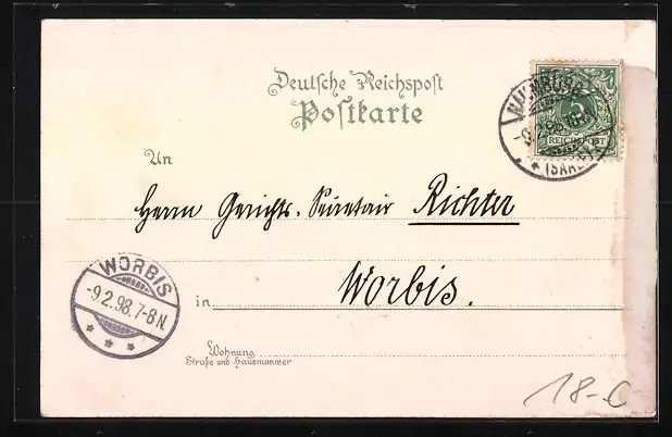 gelaufen 1898, rückseitig Klebe- und Papierreste, guter Zustand