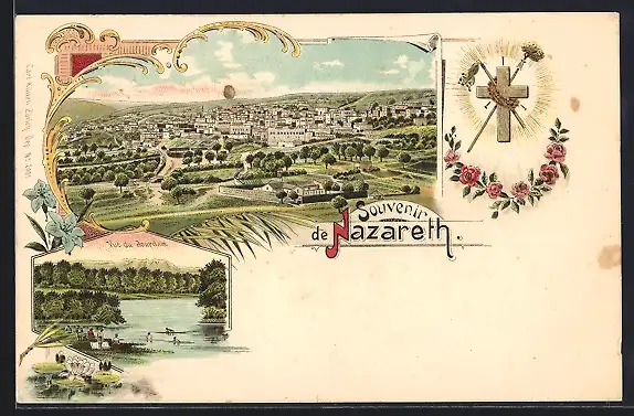 Lithographie Nazareth, Panorama, Vue du Jourdain