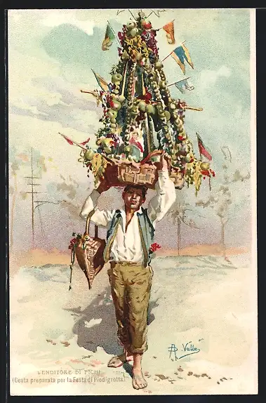 Lithographie Neapel / Napoli, Venditore di Fichi, Obstverkäufer