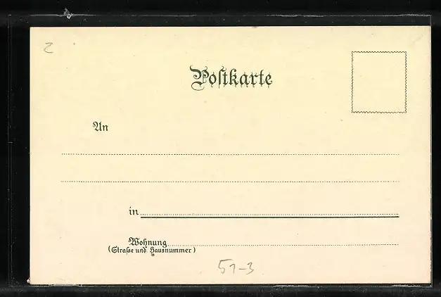 Personenbezogene Daten auf der Rückseite der Karte wurden durch blauen Textmarker unkenntlich gemacht. Die blauen Stellen sind auf die Vorderseite durchgeweicht und wirken sich negativ auf das Postkartenfoto aus