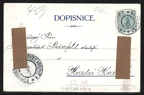 gelaufen 1900, rückseitig Klebe- und Papierreste, guter Zustand