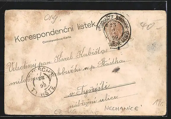 Lithographie Nechanice, Ulice Husova, Namesti, Zamek, Kostel