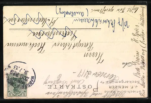 gelaufen 1913, Eckknicke li., guter Zustand