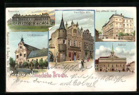 Lithographie Nem. Brod, Havlickuv dum, Nemocnice, Radnice