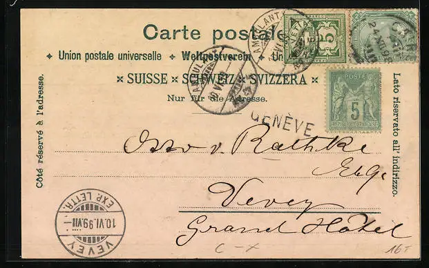 Personenbezogene Daten auf der Rückseite der Karte wurden durch blauen Textmarker unkenntlich gemacht. Die blauen Stellen sind auf die Vorderseite durchgeweicht und wirken sich negativ auf das Postkartenfoto aus