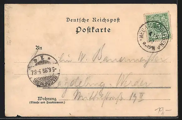 gelaufen 1899, Eckknick re. oben, minimaler Einriss re. unten, Kanten bestoßen, guter Zustand