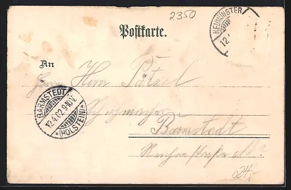 gelaufen 1902, Briefmarke entfernt, guter Zustand