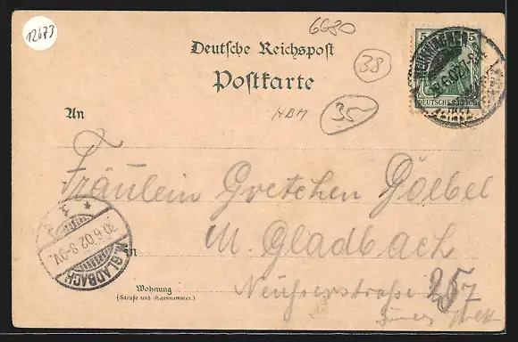 gelaufen 1902, rückseitig Klebe- und Papierreste, guter Zustand